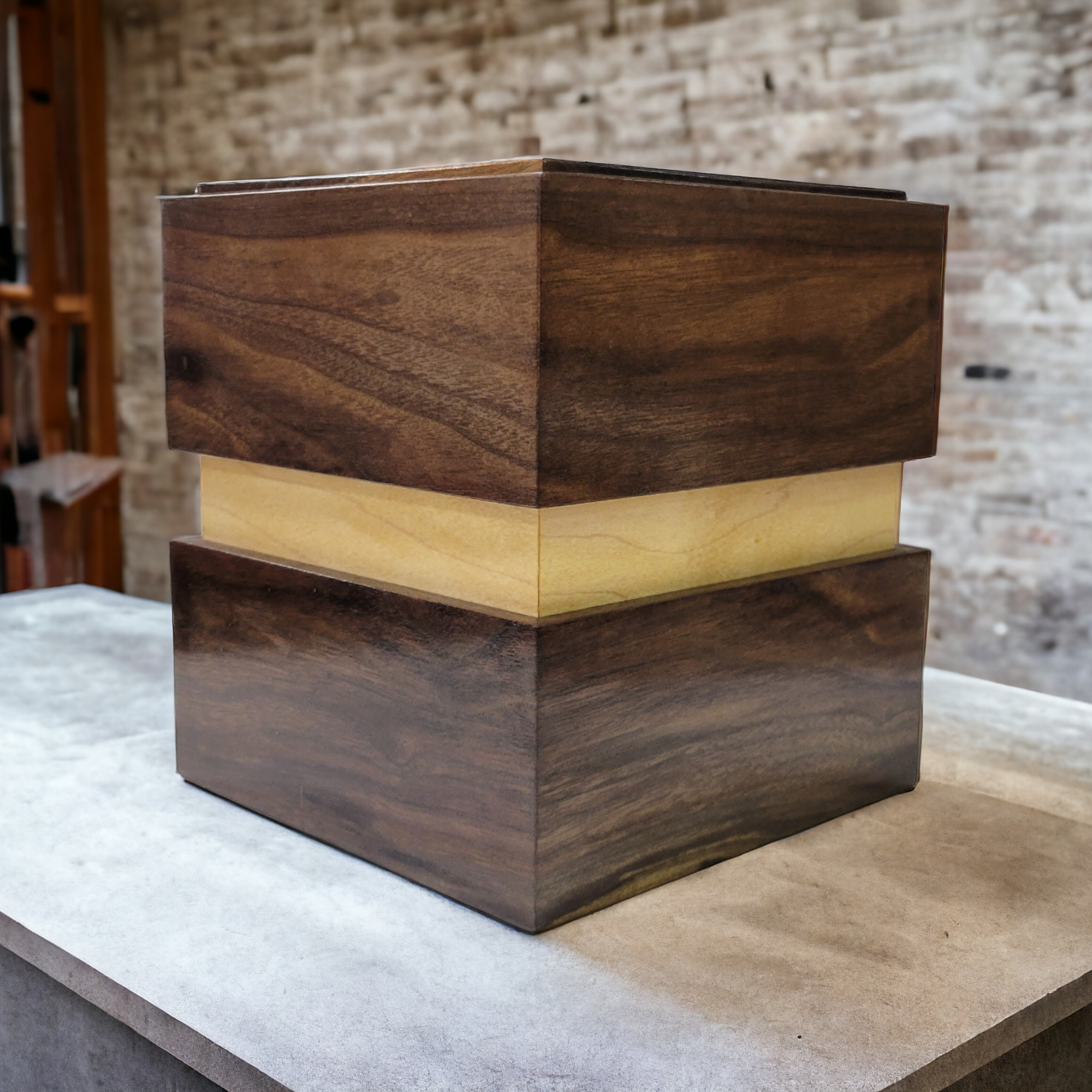 Welcome to our website! We offer a selection of handmade wooden urns for human and pet ashes, crafted with care in Alberta, Canada. Our urns come in a range of sizes and can be personalized with engraving. We understand that losing a loved one is difficult and strive to make the process of selecting an urn as stress-free as possible. We offer excellent customer service and hope to assist you in finding the perfect urn for your loved one.